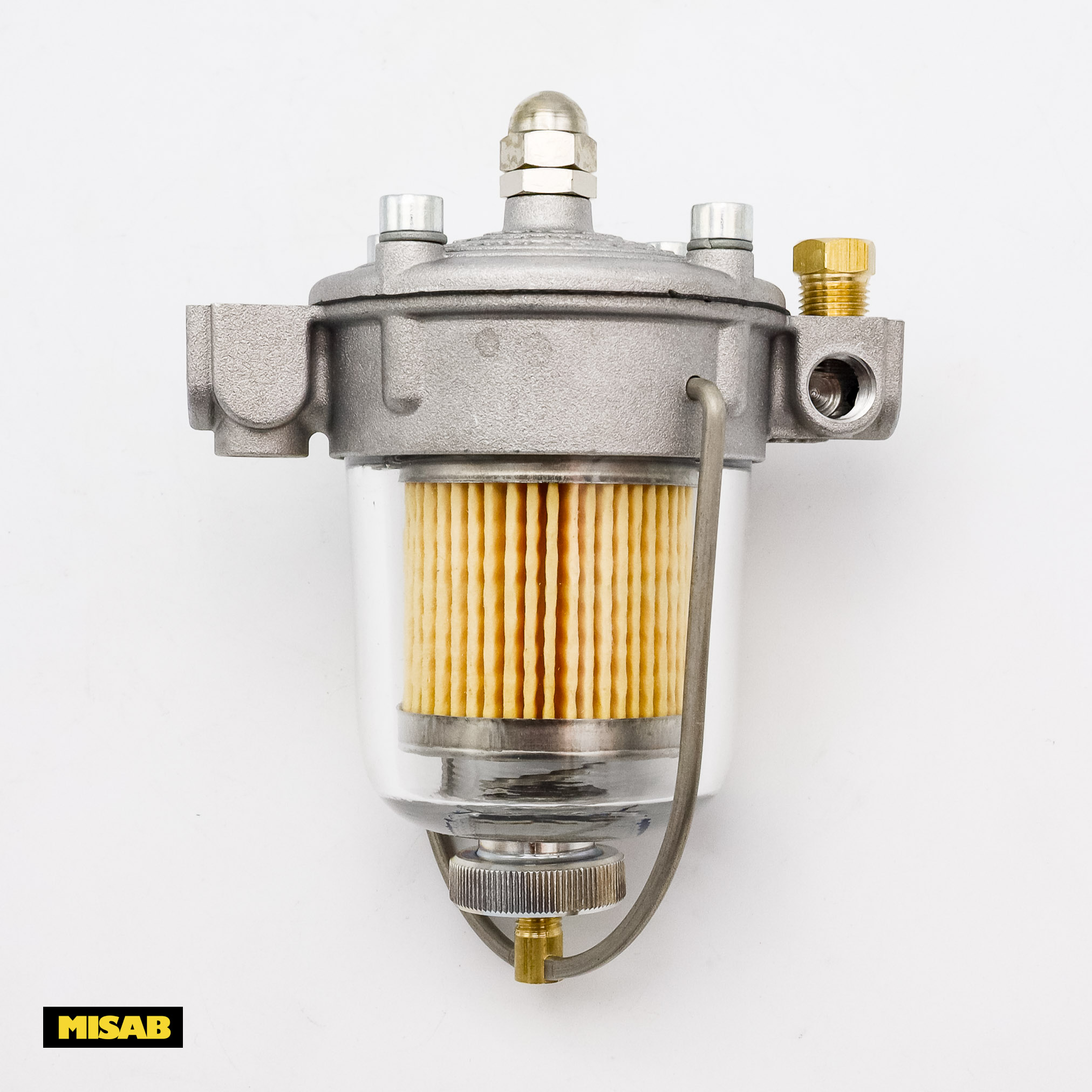 Regulatorn är utrustad med ett utbytbart bränslefilter i papper och en robust filterkopp av glas. Den är fullt kompatibel med E85 och levereras komplett med monteringsfäste och skruvar för enkel installation.